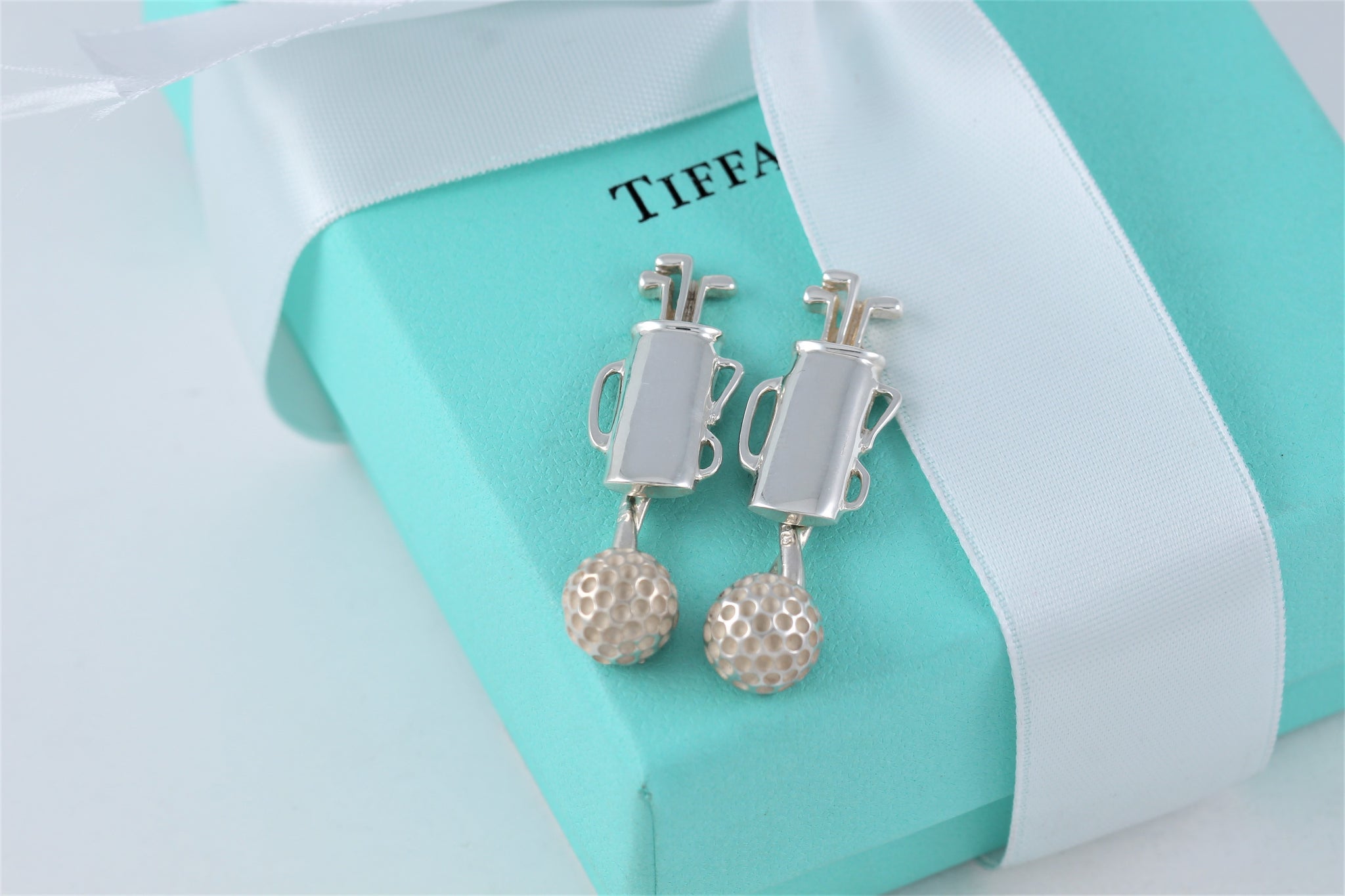 Tiffany & Co. Mens Silver Golf Ball & Golf Bag Cufflinks