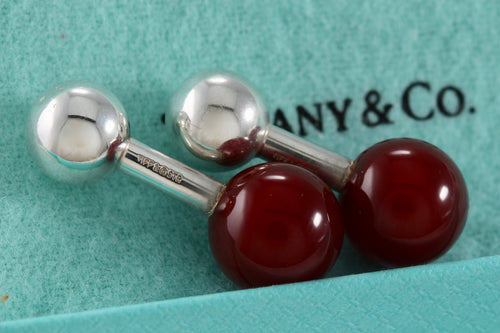 Tiffany & Co. Mens Silver Red Carnelian Barbell Cufflinks