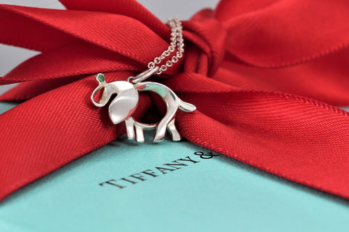 Tiffany & Co. Nature Silver "Save The Wildlife" Tsvorite Stone Elephant Charm Necklace