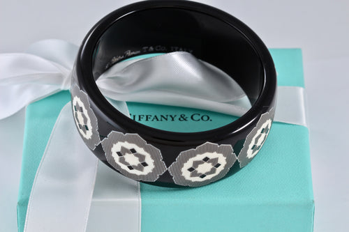 Tiffany & Co. Paloma Picasso Black White Lacquer Wide Zellige Bangle Bracelet
