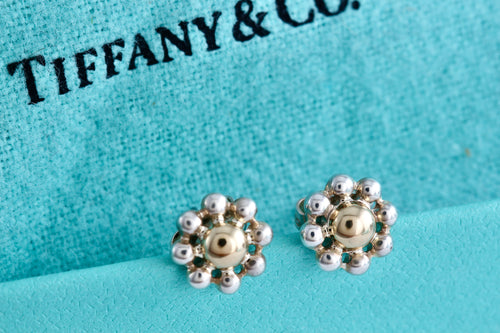 Tiffany & Co. Paloma Picasso 18Kt. Gold & Silver Jolie Flower Stud Earrings