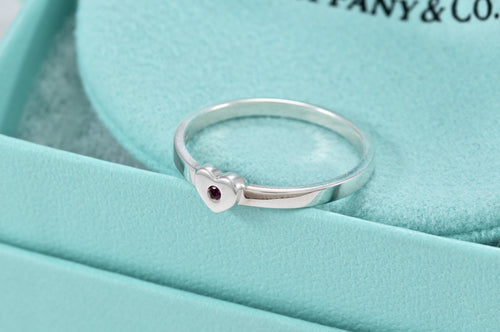 Tiffany & Co. Paloma Picasso Ruby Silver Heart Stacking Band Ring