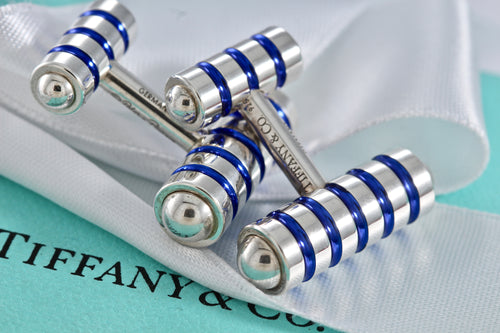 Tiffany & Co. Paloma Picasso Mens Silver Blue Enamel Stripe Cufflinks