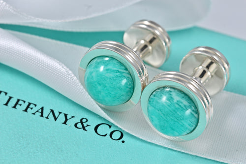 Tiffany & Co. Paloma Picasso Mens Silver Amazonite Cufflinks