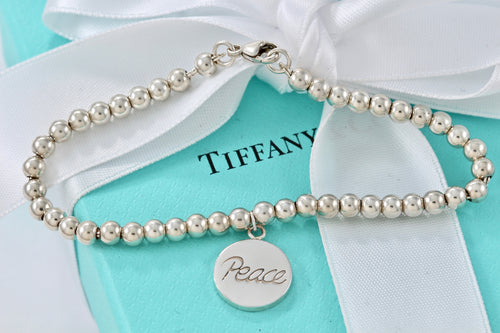 Tiffany & co. Paloma Picasso Silver Grafitti "PEACE" Circle Disc Bead Bracelet