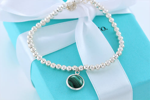 Tiffany & Co. Paloma Picasso Silver Malachite Circle Disc Mini Ball Beaded Bracelet