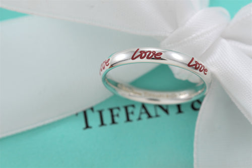 Tiffany & Co. Paloma Picasso Silver Red Enamel ''Love'' Band Ring