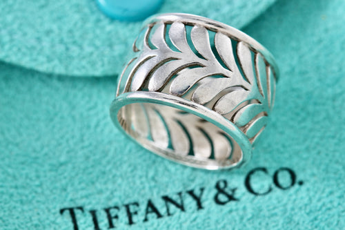 Tiffany & Co. Paloma Picasso Silver Villa Paisley Palm Wide Band Ring Size 5
