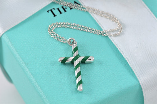 Tiffany & Co. Paloma Picasso Silver Venezia Green Enamel Swirl Cross Necklace