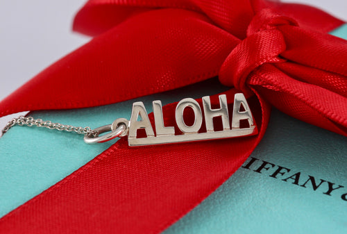Tiffany & Co. Silver "ALOHA" Pendant Necklace