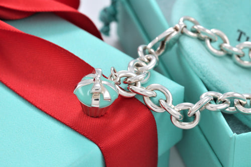 Tiffany & Co. Silver Blue Enamel Giftbox Charm Bracelet