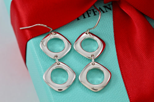Tiffany & Co. Silver Double Cushion Dangle Drop Hook Earrings