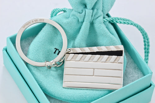 Tiffany & Co. Silver Directors Black Enamel Clapping Board Key Ring Keychain