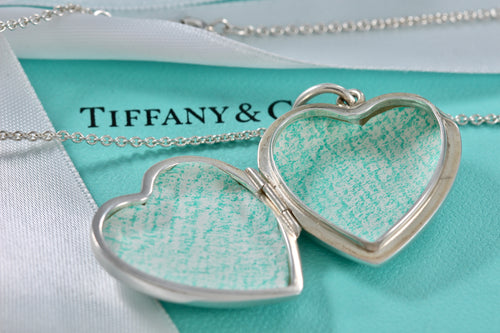 Tiffany & Co. Silver Large Heart Locket 18" Chain Necklace