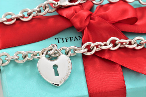 Tiffany & Co. Silver Large Heart Keyhole Charm Bracelet