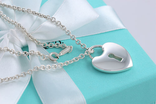 Tiffany & Co. Silver Large Keyhole Heart Padlock Pendant Necklace