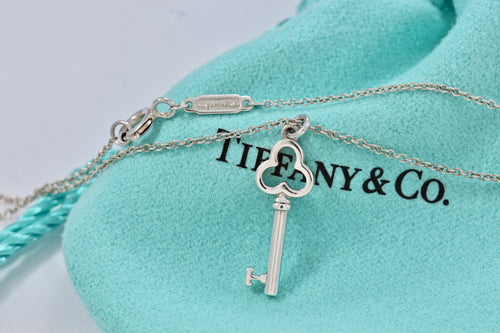 Tiffany & Co. Silver Mini Trefoil Key Pendant Necklace