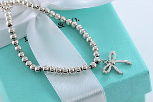 Tiffany & Co. Silver Mini Ribbon Bow Ball Beaded Bracelet
