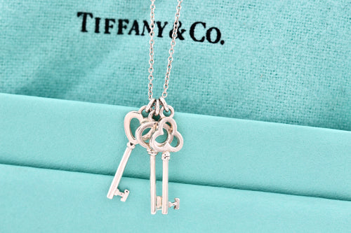 Tiffany & Co. Silver Mini Oval, Heart & Trefoil Triple Key Pendant 20" Necklace