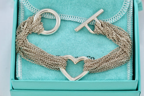 Tiffany & Co. Silver Multi Strand Toggle Open Heart Mesh Bracelet