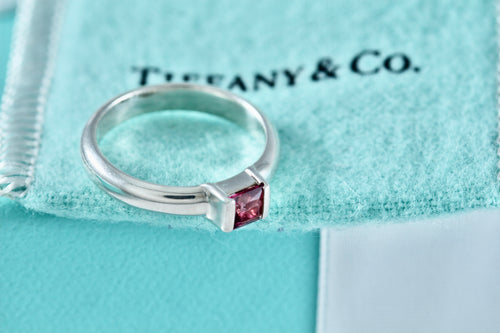 Tiffany & Co. Silver Pink Square Tourmaline Stacking Ring