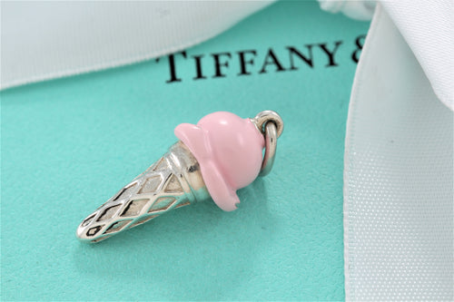 Tiffany & Co. Silver Pink Enamel Ice Cream Charm Pendant