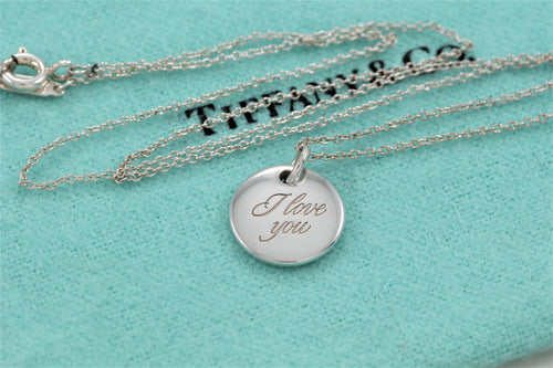 Tiffany & Co. Silver Small ''I Love You'' Disc Pendant Necklace YOURS