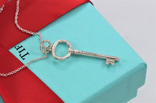Tiffany & Co. Silver Skeleton Oval Key Pendant Necklace
