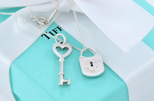 Tiffany & Co. Silver Small 1" Heart Key & Keyhole Padlock Necklace