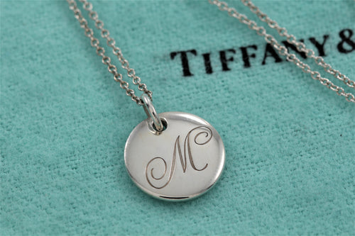 Tiffany & Co. Silver Small Letter ''M'' Disc Pendant Necklace YOURS