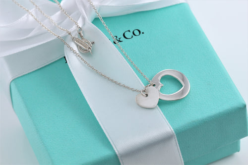 Tiffany & Co. Silver Stencil Cut out Heart Circle Tag Necklace