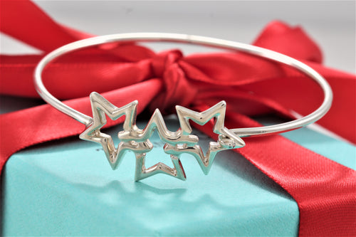 Tiffany & Co. Silver Triple Star Hook Bangle Bracelet
