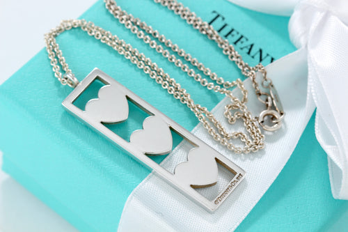 Tiffany & Co. Silver Triple Heart Bar Pendant Necklace