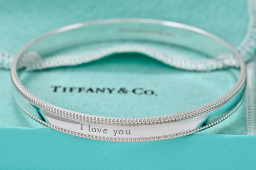 Tiffany & Co. Silver Yours "I Love You" Beaded Edge Bangle