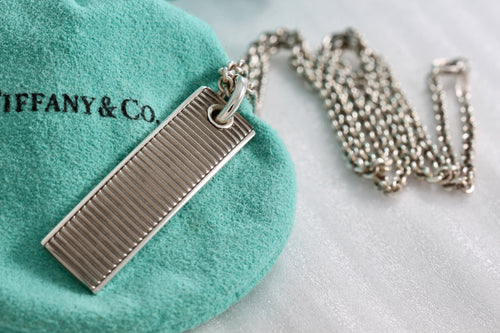 Tiffany & Co. Titanium & Silver Coin Edge Bar Pendant Necklace