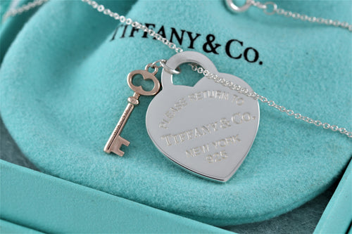 Return To Tiffany & Co. Heart & Mini Key Pendant Chain 16" Necklace