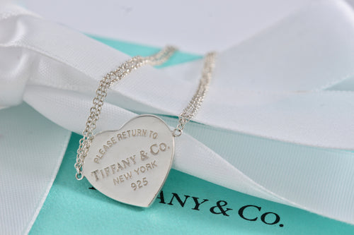 Return To Tiffany & Co. Silver Heart I.D. Charm Pendant 26mm