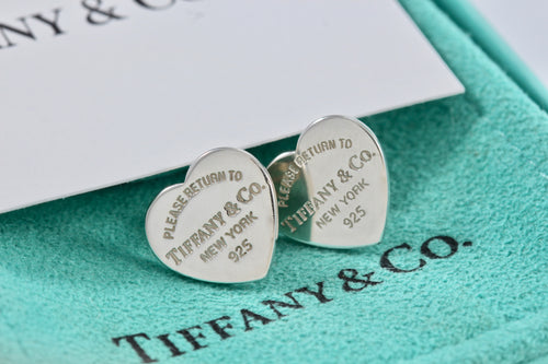 Return To Tiffany & Co. Silver Heart Stud Earrings Medium 1/2"