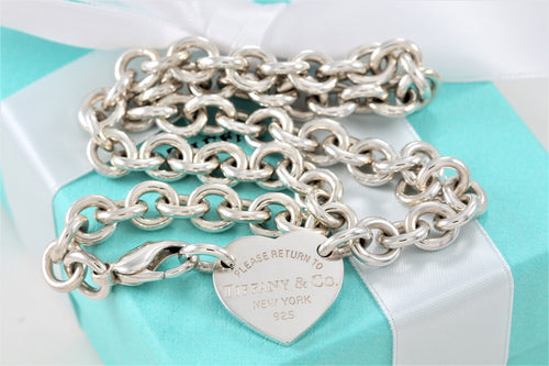 Return To Tiffany & Co. Silver Heart Charm Toggle Heavy Link Necklace NEWEST VERSION