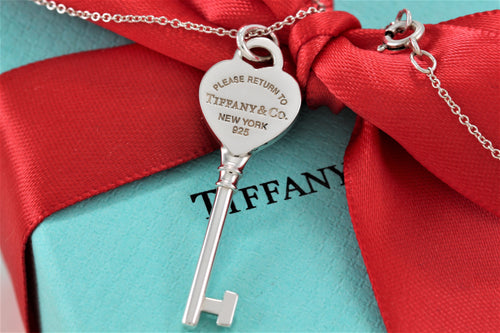 Return To Tiffany & Co. Silver Heart Key Pendant 16" Necklace