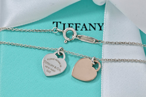 Return To Tiffany & Co. Silver Mini Double Heart Tag Rubedo Necklace