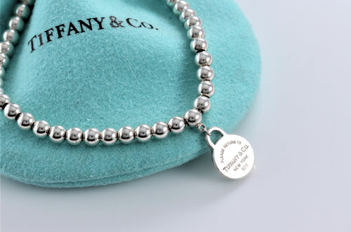 Return To Tiffany & Co. Silver Mini Circle Tag Mini Ball Bead Bracelet
