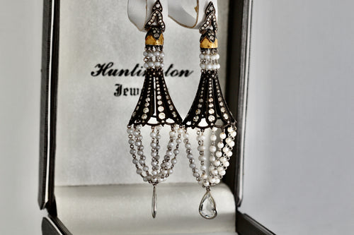 Sevan Bicakci 18Kt. Oxidized Gold Platinum Diamond Pearl Chandelier Drop Great Gatsby Earrings