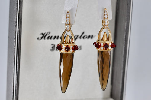 Stephen Webster 18Kt. Gold Smokey Topaz & Garnet "Russian Roulette" Bullet Drop Earrings