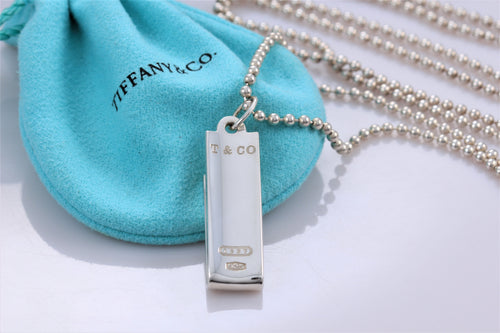 Tiffany & Co. 1837 Silver Mini Bar Pendant Chain 16" Necklace