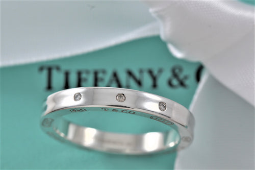Tiffany & Co. 1837 Silver Narrow 3 Diamond Band Stacking Ring