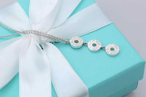 Tiffany & Co. 1837 Silver Triple Circle Drop Dangle Pendants 16" Necklace