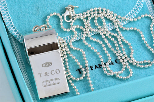 Tiffany & Co. 1837 Silver Whistle Pendant Beaded Chain Necklace