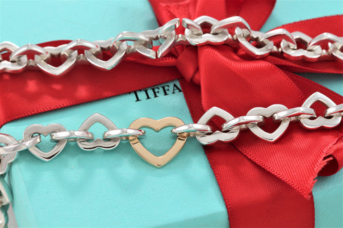 Tiffany & Co. 18K Gold & Silver Heart Links 16" Necklace