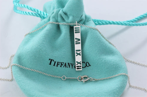 Tiffany & Co. Atlas Silver Stencil Roman Numerals Thin Bar Chain Necklace